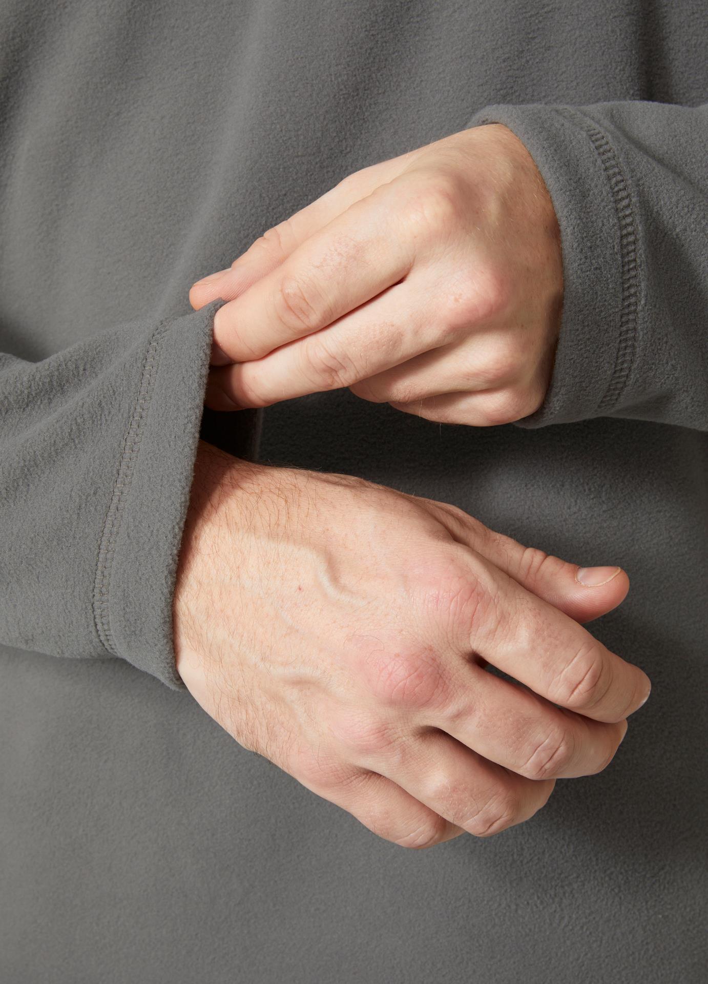 Öne Çıkan Özellikler YKK® Fermuar Yarım Fermuar yapısı Düşük hacim için düz dikişler Göğüste işlemeli HH® logosu Geri Dönüştürülmüş İçerik 200gr/m2 tüylenmez kumaş
